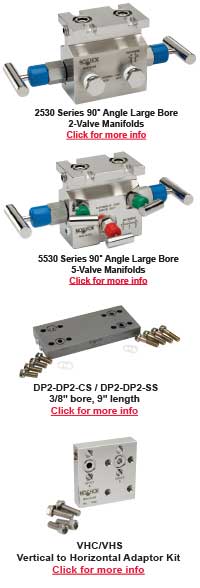 Berea, Ohio (June 17, 2016) NOSHOK is pleased to announce the availability of several new valve products and accessories including the 2530 & 5530 Series 90° Angle 2- and 5-Valve Manifolds, as well as a 9” ΔP to ΔP Adaptor and a Vertical to Horizontal Adaptor Kit. The new NOSHOK 2530 Series 90° Angle Double Flange Large Bore (0.375” orifice) Natural Gas Manifold incorporates two isolation valves, providing additional isolation for applications that require redundancy. These NOSHOK large bore manifold valves feature a standard non-rotating stem tip and a soft seat design rated to 6,000 psi, as well as a replaceable Delrin® seat and straight through porting for easy roddable cleaning of the isolation valves. The new NOSHOK 5-Valve 90° Angle Double Flange Large Bore (0.375” orifice) Natural Gas Manifold is an addition to our existing 5530 Series manifold offering. These manifolds are designed for use with differential pressure transmitters incorporating two isolation valves, two equalizing valves and a vent valve in natural gas applications. These valves are also rated to 6,000 psi. NOSHOK has also added new valve accessories, including a 9” length, 3/8” bore Δ Pressure to Δ Pressure Adaptor to accommodate various application configurations and space restrictions, and a Vertical to Horizontal Adaptor Kit which converts vertically mounted Stabilized Connectors to a horizontal position for mounting additional valves and instrumentation. For more information on this product or other NOSHOK measurement solutions, contact NOSHOK Customer Support at 440.243.0888, visit our website at www.noshok.com, or e-mail info@noshok.com. |