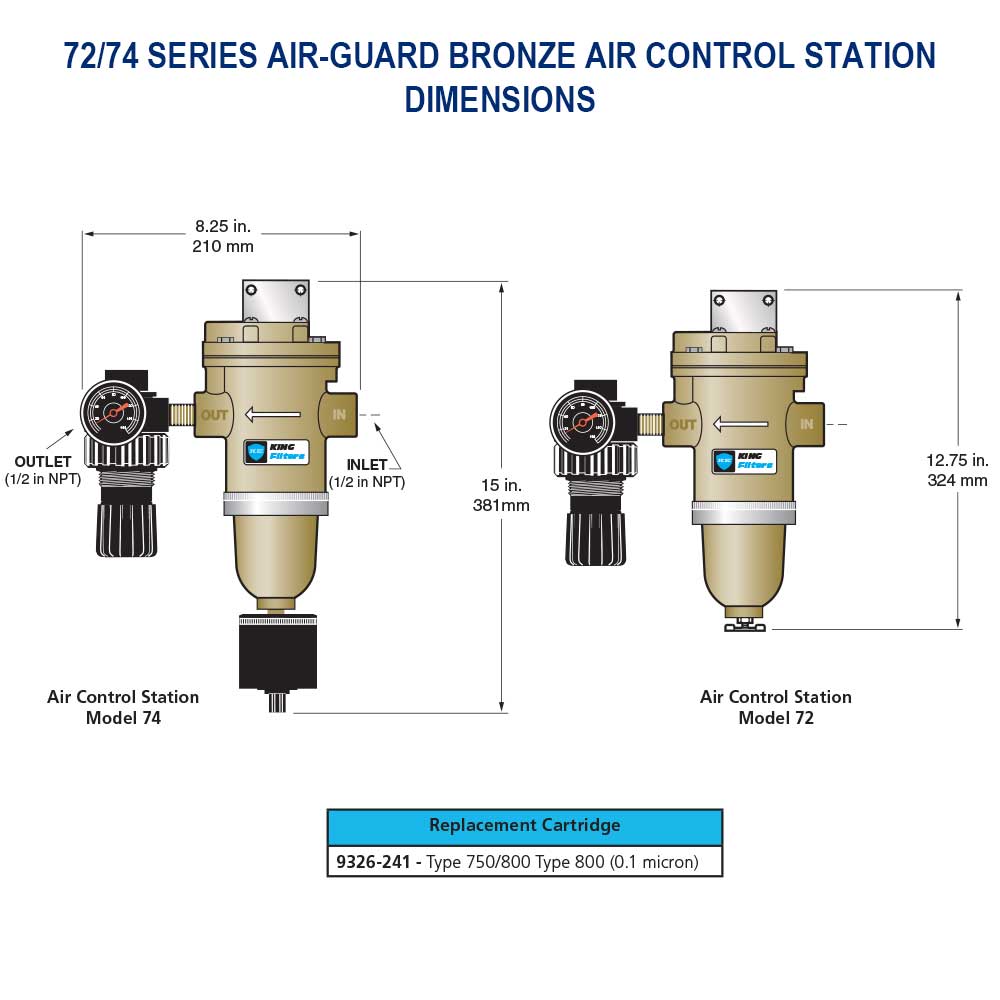 SERIES | 72 | Air-Guard Bronze Air Control Station 20 SCFM with manual drain | 74 | Air-Guard Bronze Air Control Station 20 SCFM with auto drain | ||