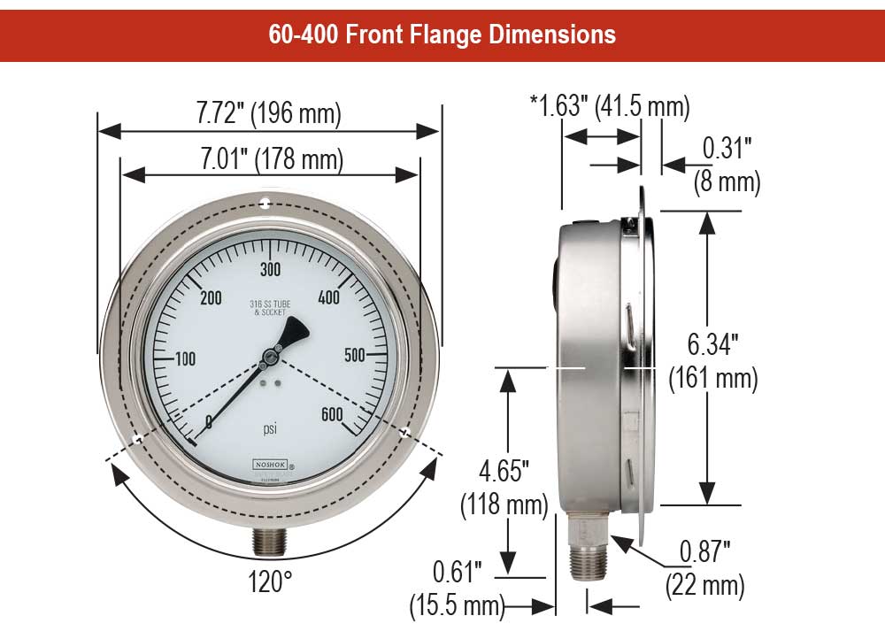 Home » Products » Temperature » Thermometers » 300/400/600/700 Series Vapor Actuated Remote Dial Indicating Thermometers » 300/400/600/700/900 Series Vapor Actuated Remote Dial Indicating Thermometers Dimensions