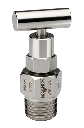Note: The standard o-ring in all the NOSHOK valves is FKM and the standard handles are “T” handles (HL2).The handle material will always match the material of the valve, unless otherwise specified. For example, the “T” handle (HL2) on the 204-MFC will be Steel.